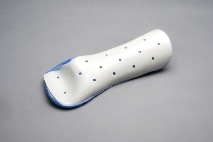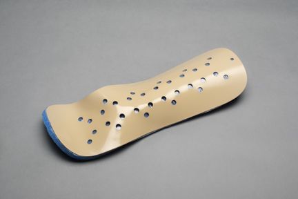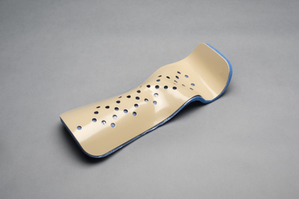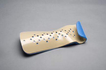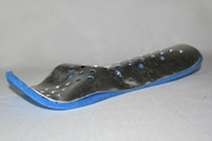 All of our splints are: Beige or white powder coated, malleable aluminum. Preformed, can be easily adjusted to fit contour of the arm. Ventilated for air circulation. Open cell blue breathable liner.